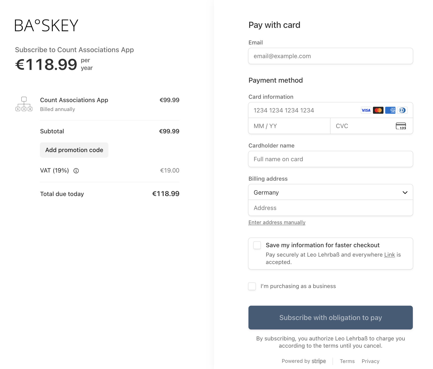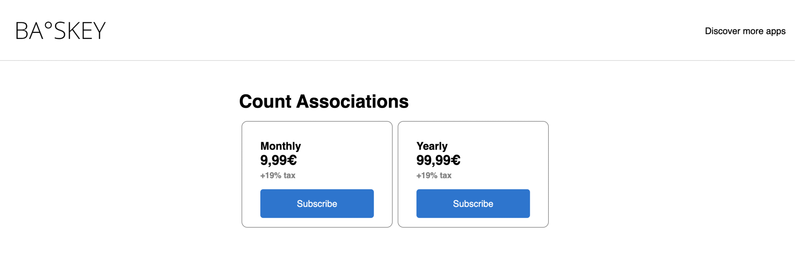 Step 1: To initially install the app and get your 14-day free trial, please click the following link https://apps.baskey.eu/associationscounter/install and follow the instructions presented below or get it directly through the app marketplace.