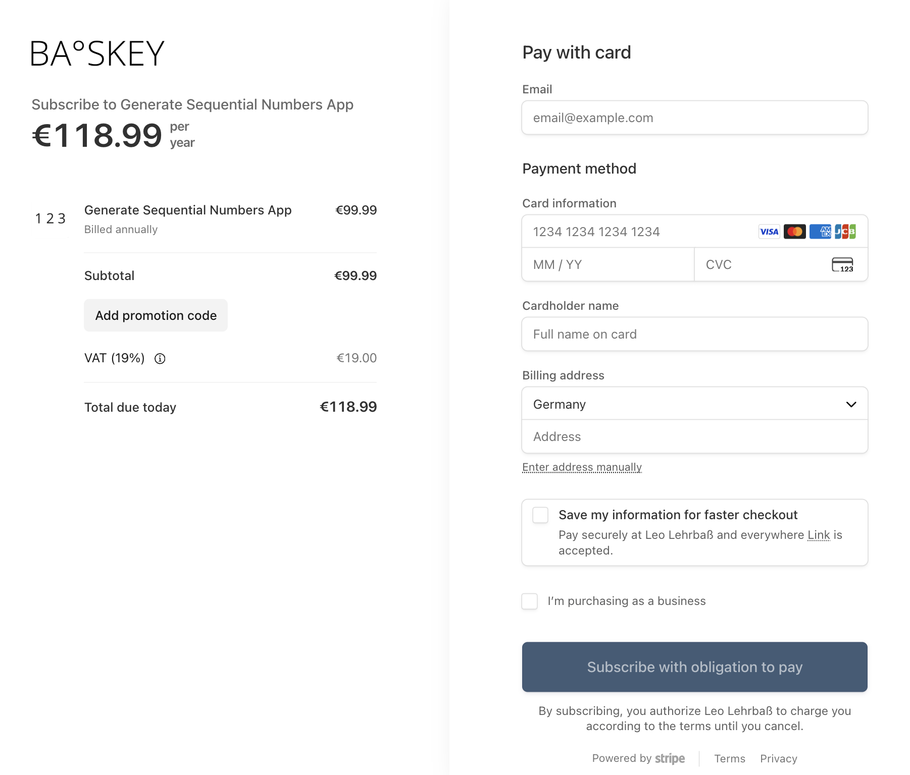 Step 1: To initially install the app and get your 14-day free trial, please click the following link https://apps.baskey.eu/sequentialnumber/install and follow the instructions presented below or get it directly through the app marketplace.