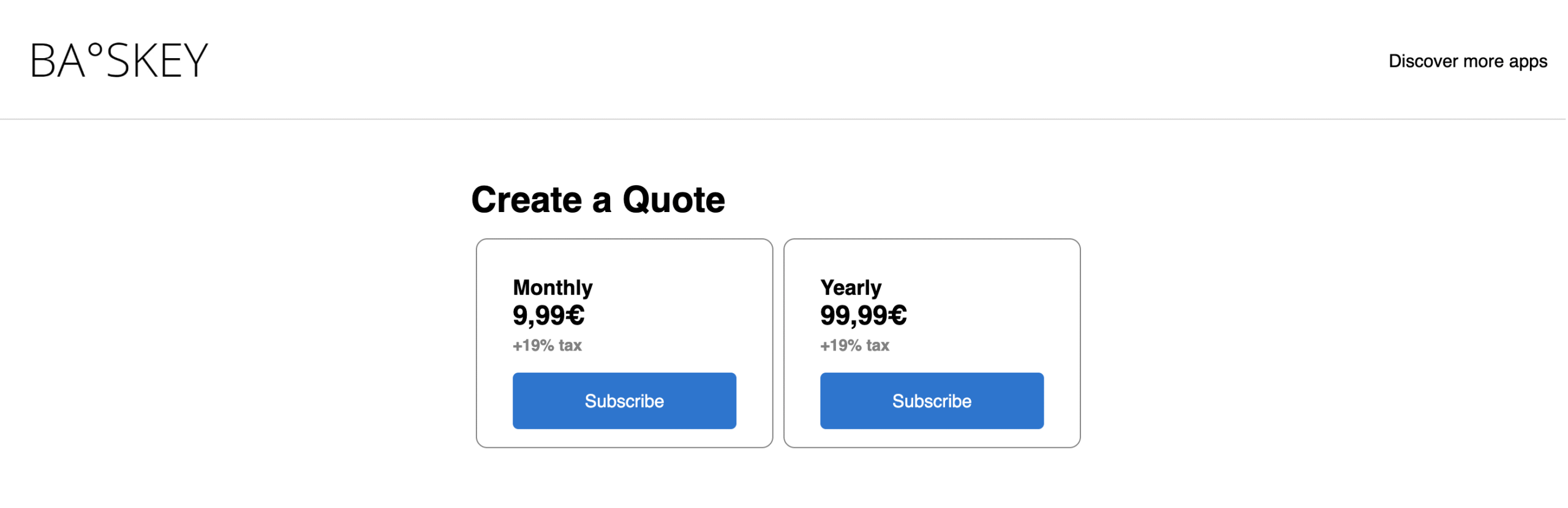 Step 1: To initially install the app and get your 14-day free trial, please click the following link https://apps.baskey.eu/create-quotes-workflow/install and follow the instructions presented below or get it directly through the app marketplace.